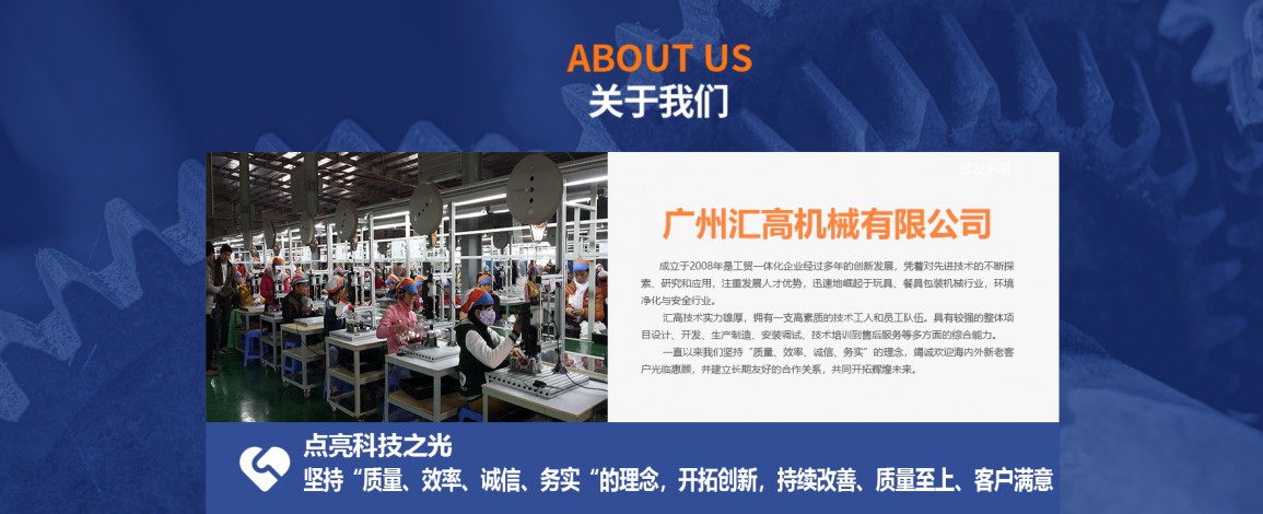 廣州匯高機械設備有限公司,成立于2008年是工貿(mào)一體化企業(yè)經(jīng)過多年的創(chuàng)新發(fā)展,憑著對先進技術(shù)的不斷探索、研究和應用,注重發(fā)展人才優(yōu)勢,迅速地崛起于玩具、餐具包裝機械行業(yè),環(huán)境凈化與安全行業(yè)。